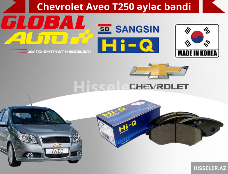 Chevrolet Aveo T250 modeli üçün Hi-Q brendinə məxsus orijinal Cənubi Koreya istehsalı əyləc bəndi təqdim edirik.