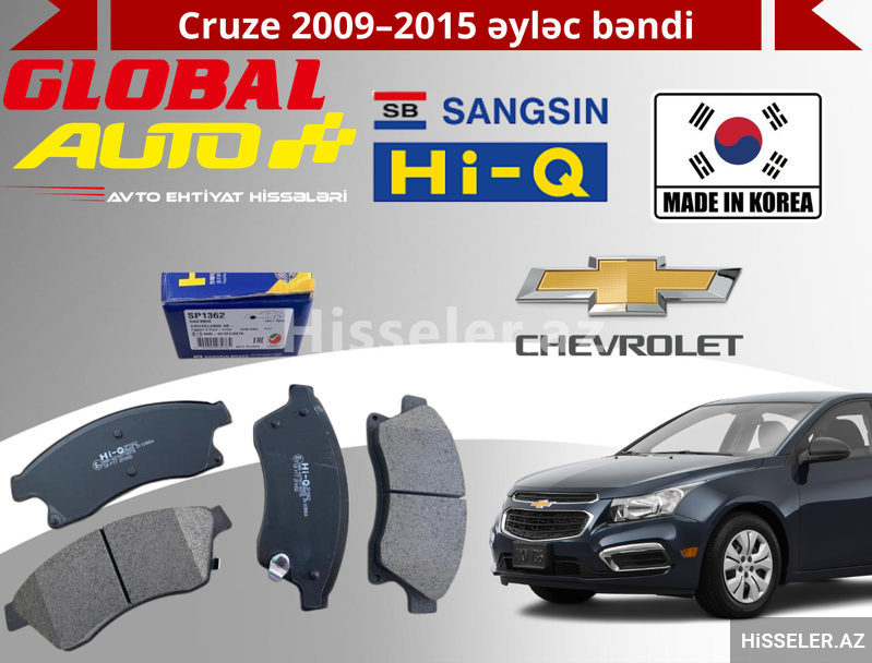 Chevrolet Cruze 2009–2015 modelləri üçün Hi-Q markasının orijinal Cənubi Koreya istehsalı əyləc bəndlərini təqdim edirik.