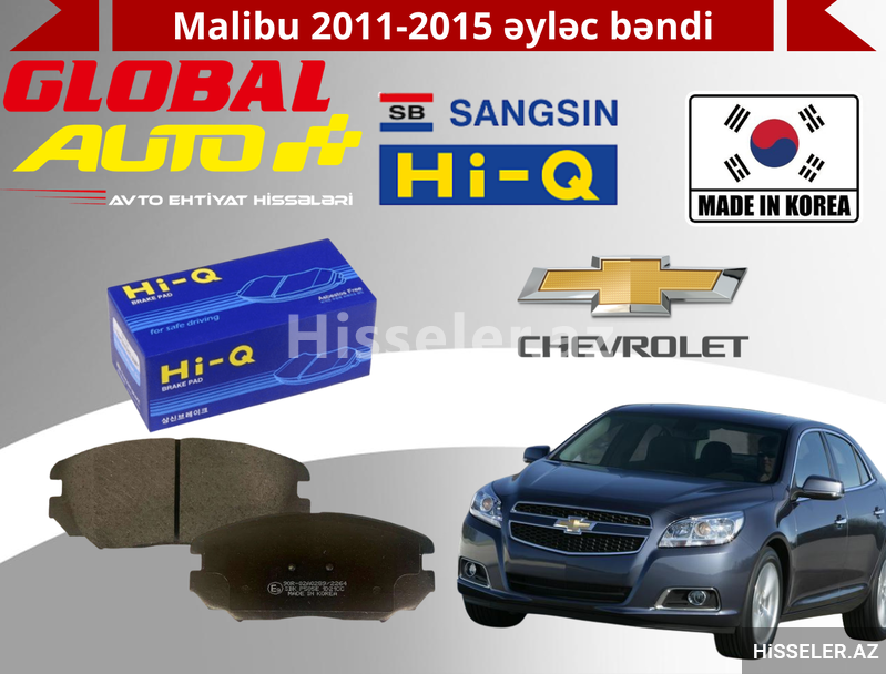 Chevrolet Malibu 2011–2015 modelləri üçün Hi-Q markasının orijinal Cənubi Koreya istehsalı əyləc bəndləri – lüks keyfiyyət, səssiz performans və uzunömürlülük axtaranlar üçün ideal seçimdir.