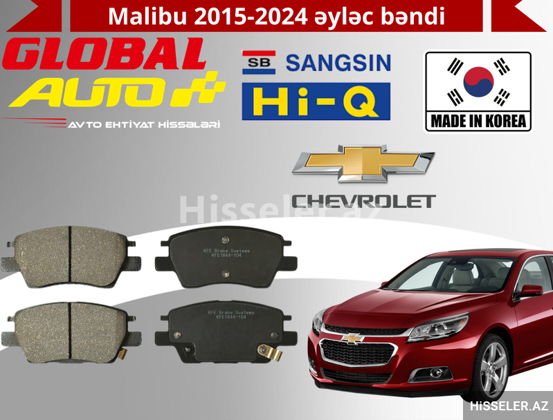 Chevrolet Malibu 2015–2024 modelləri üçün Hi-Q markasının orijinal Cənubi Koreya istehsalı əyləc bəndləri — təhlükəsizliyin, səssizliyin və keyfiyyətin lüks ifadəsidir.