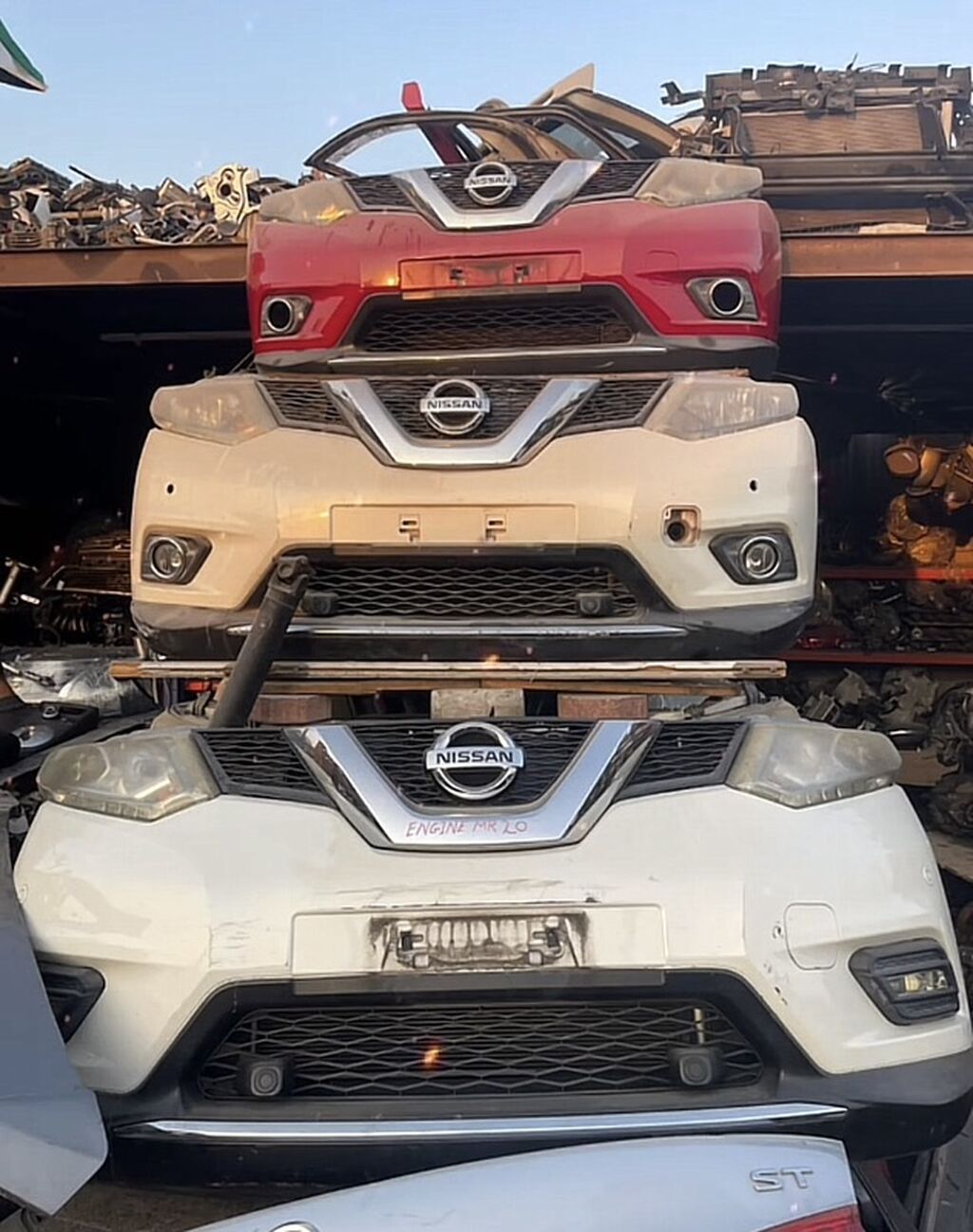 - Nissan markalı krossover/SUV modelləri üçün ön hissə yığımları. Şəkillərdə Nissan loqolu kapot, radiator barmaqlığı, tampon, fara, duman lampaları, güzgü sütunu hissələri və əlaqəli montaj detallarından ibarət komplektlər görünür.